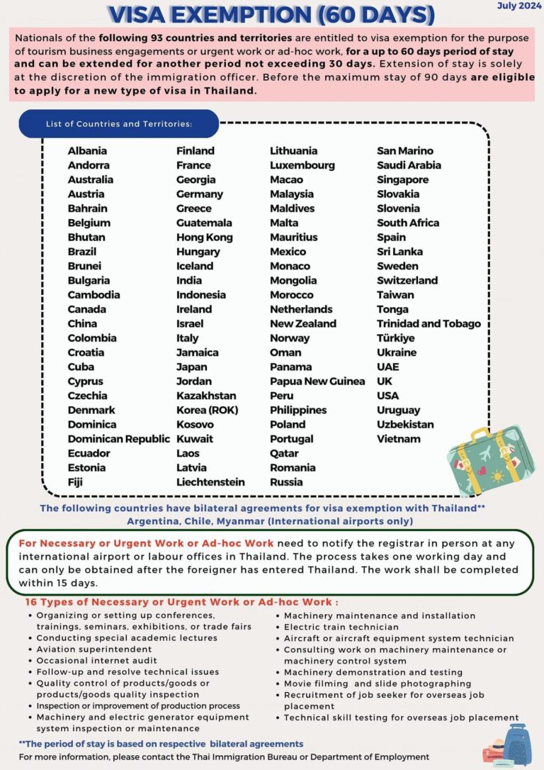 List of Countries and Territories Which Have Bilateral Agreement on Visa Exemption for Ordinary passports with Thailand